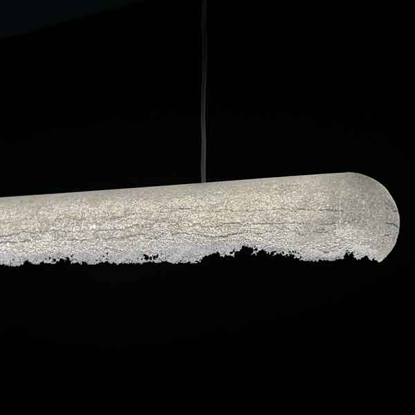 Hanglamp de FLiRD Wave –Suikerachtige glazen hanglamp- is een unieke glazen LED hanglamp, handgemaakt met de ambachtelijke pâte de verre-techniek. De suikerachtige structuur en golvende vormen zorgen voor een sfeervol lichtbeeld én een exclusief designstatement. Perfect voor kantoren, woonruimtes en ontvangsthallen.